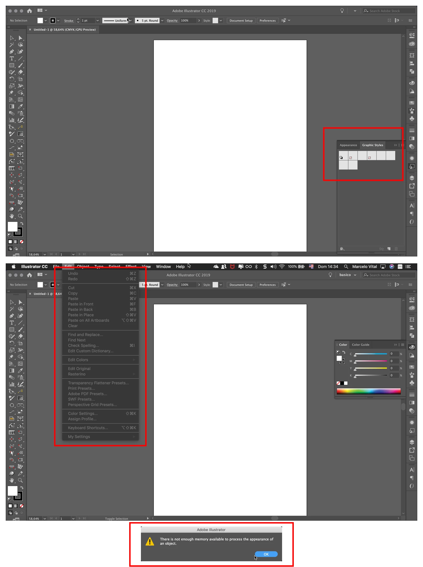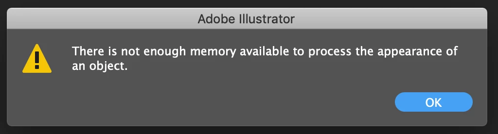 Adobe Illustrator cc 2019 "not enough memory (RAM)" issues running on Mac Pro