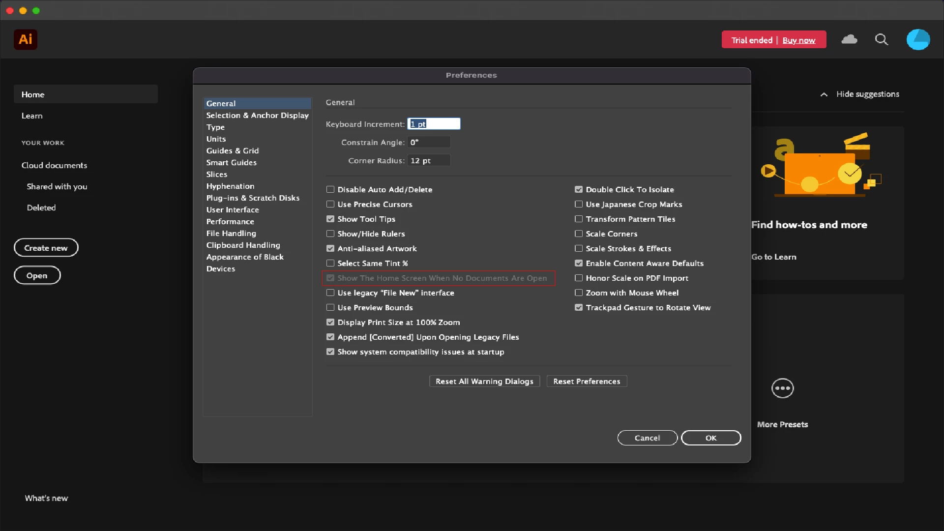 If that doesn't help either, would you mind confirming if you have an active CC subscription and which version of Illustrator is installed?
