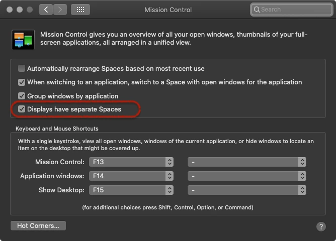 But there is a problem. Illustrator does not support “Displays have separate Spaces”.