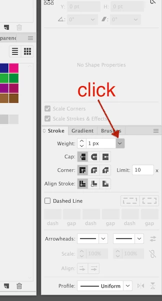 For example, if you click Stroke / Weight, the popup will be displayed on the right edge of the right monitor.