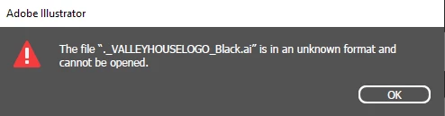 I have severla .ai files in dropbox that I downloaded on a new computer. The files will not open in illustrator. When I try to open them illustrator says the format is unknown and cannot be opened. Anyone having the same/similar issue? I attached a screenshot of the message I received.