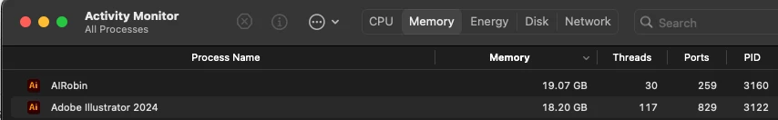 When the AI robin is running it means Illustrator+AIRobin is using almost twice as much memory and filling my system data, meaning I can't run more than two adobe applications at once, can I redirect where the AIRobin is using the memory onto external harddrive (as you can with scratchdisks), how do I resove this please?