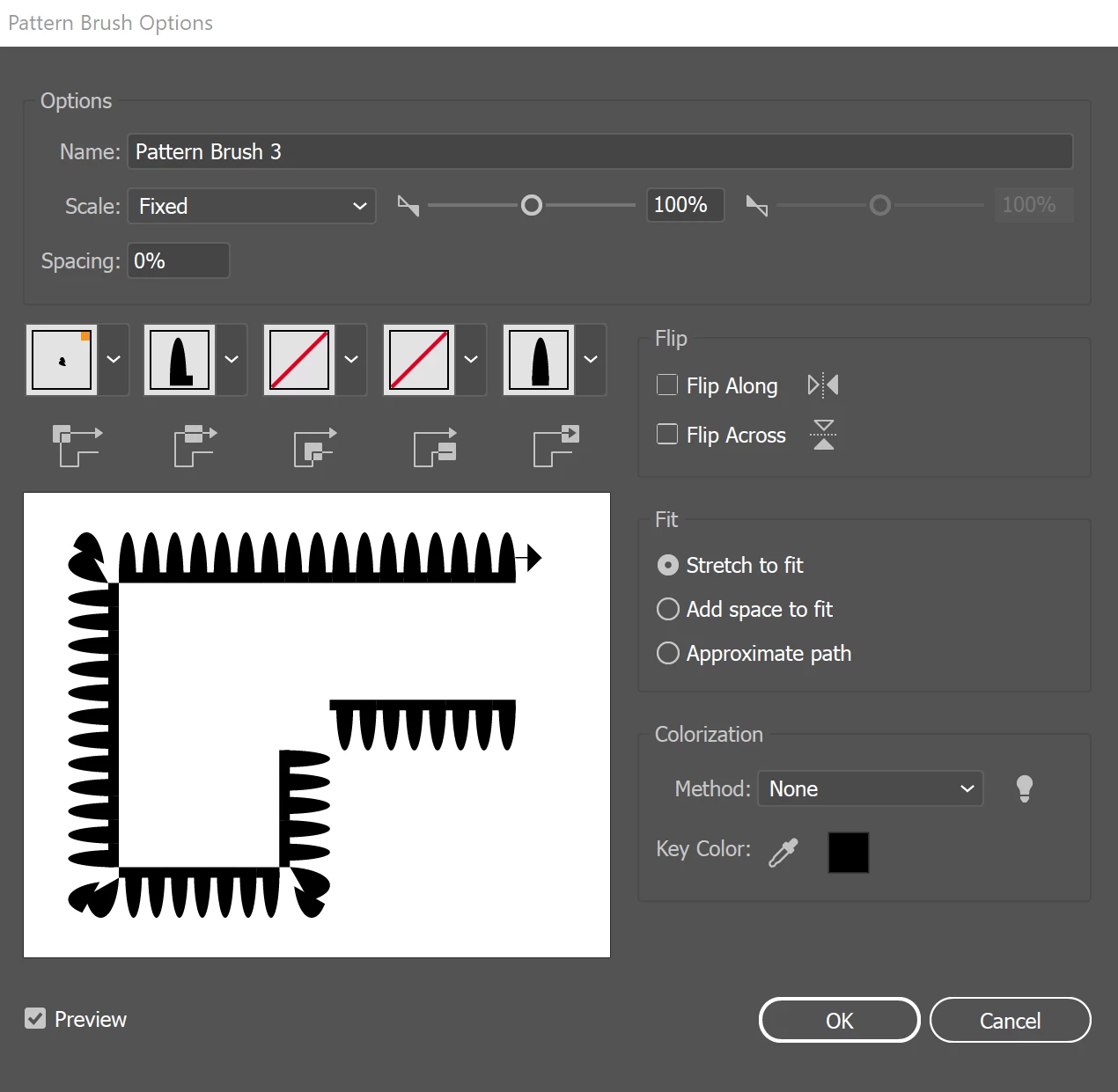I am trying to get a pattern brush that is applied to the path of a shape to be centered. Its not an issue when I'm using it on a circular path.. but when I want to create something like this below... the issue becomes apparent, with a gap on one end of the path and it butted up on the other end.
