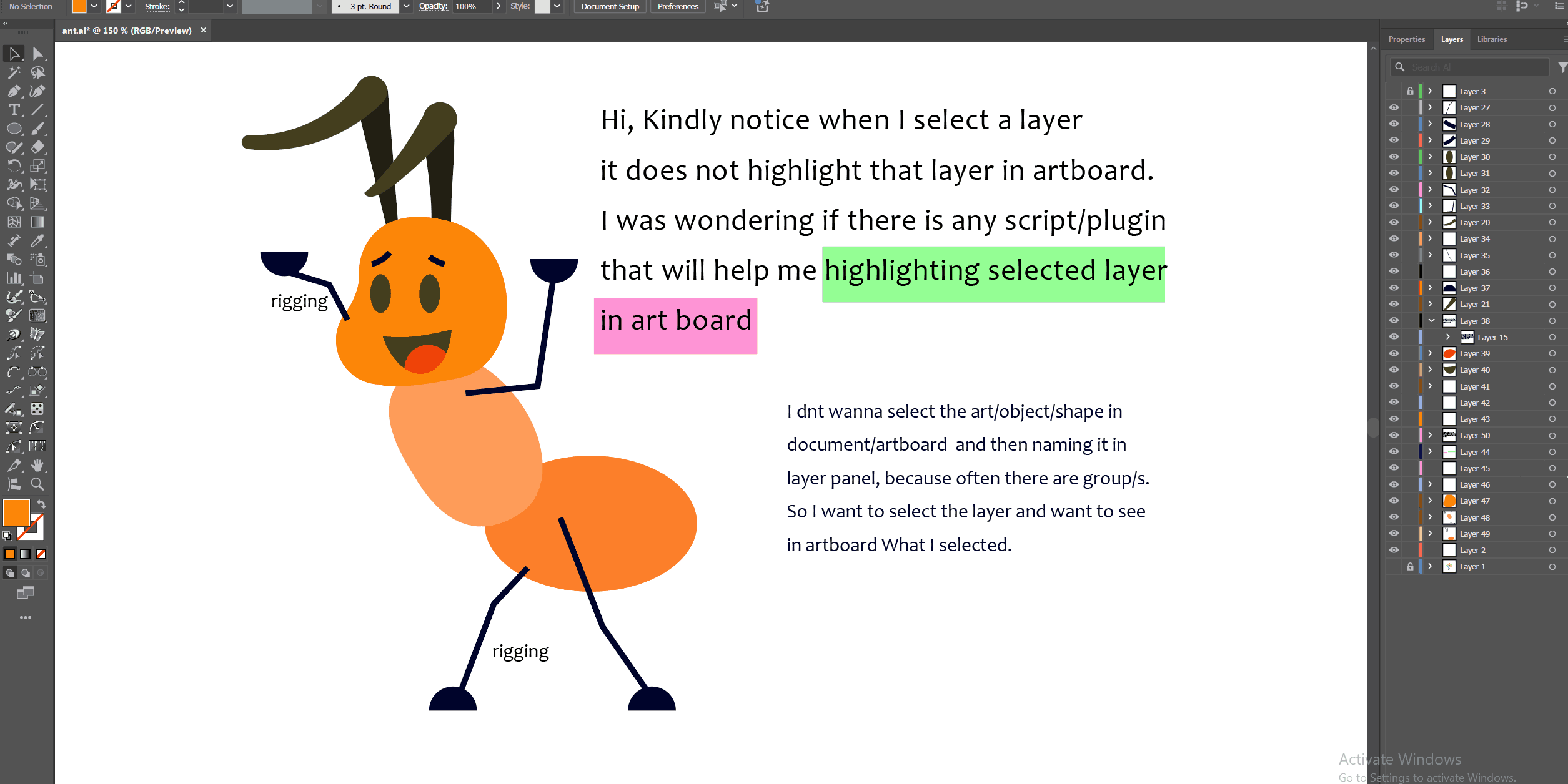Any script for showing slecting layer in artboard