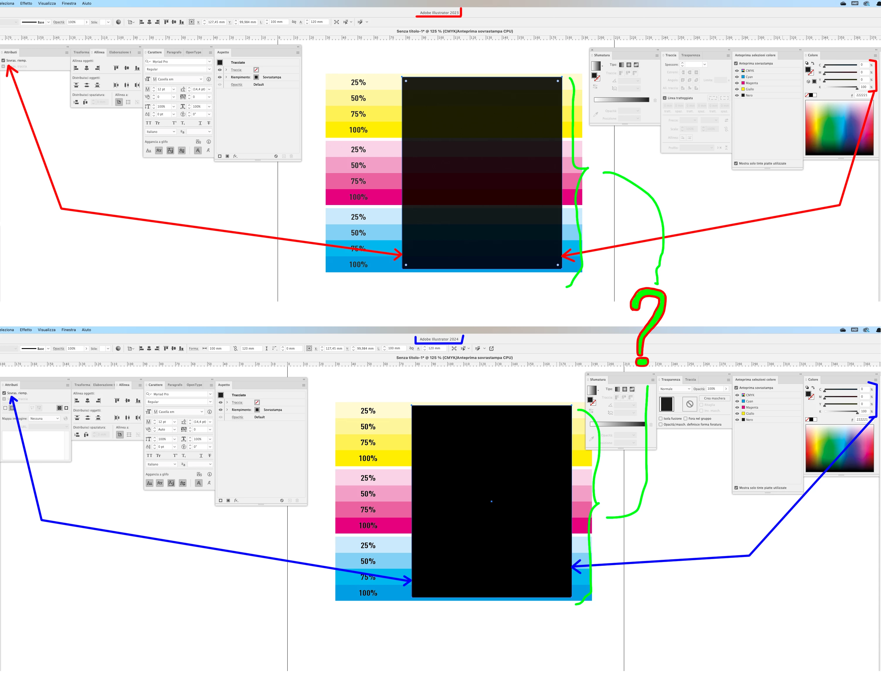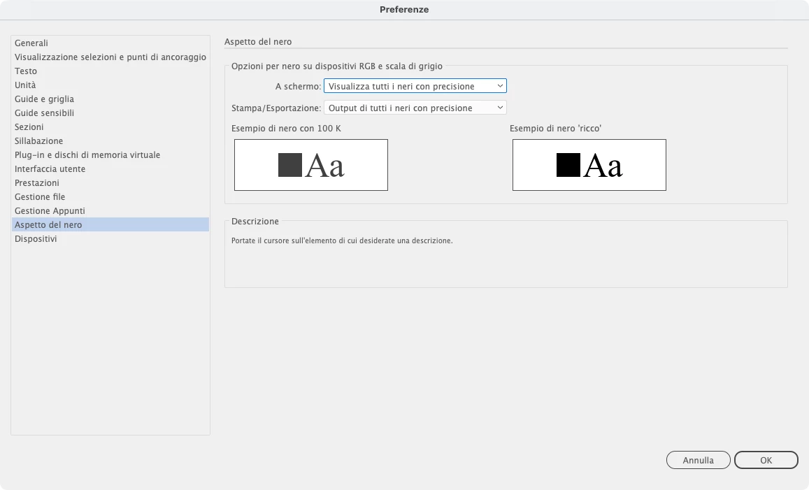 Preciso che per entrambe le versioni, nelle preferenze, ho le stesse impostazioni per quanto riguarda l'aspetto del nero. Allego anche screenshot delle preferenze.