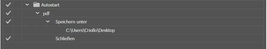 Jetzt möchte ich, das zusätzlich nach dem Öffnen automatisch ein Skript oder eine Aktion ausgeführt wird. Ziel ist es, die Datei als PDF zu speichern und Illustrator zu schließen.