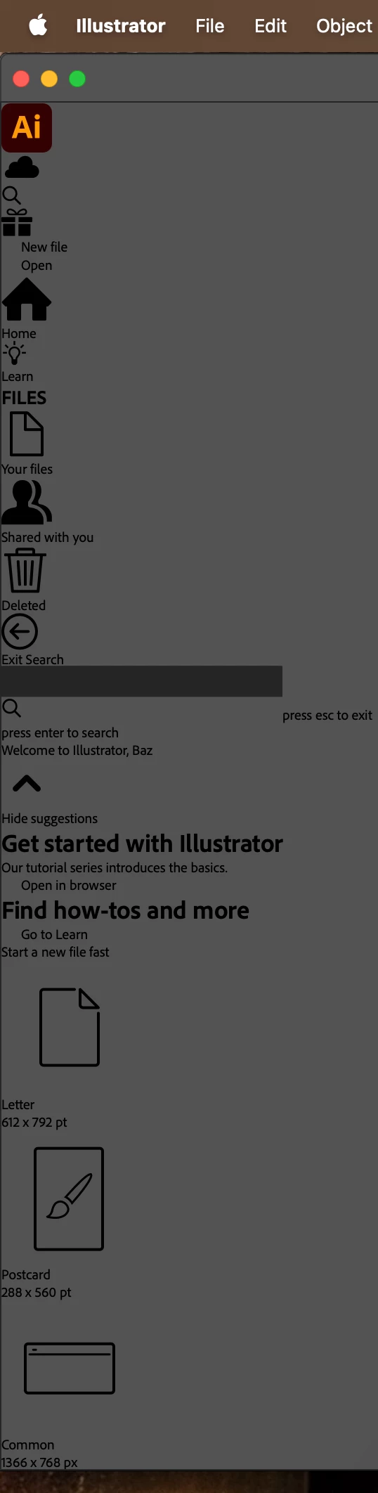 Just signed up for the 7 day trial with Illustrator, but it's acting very wierd. As per my 2 images, this is how it loads on opening, when I click the app icon, I get the workspace as per image 2.