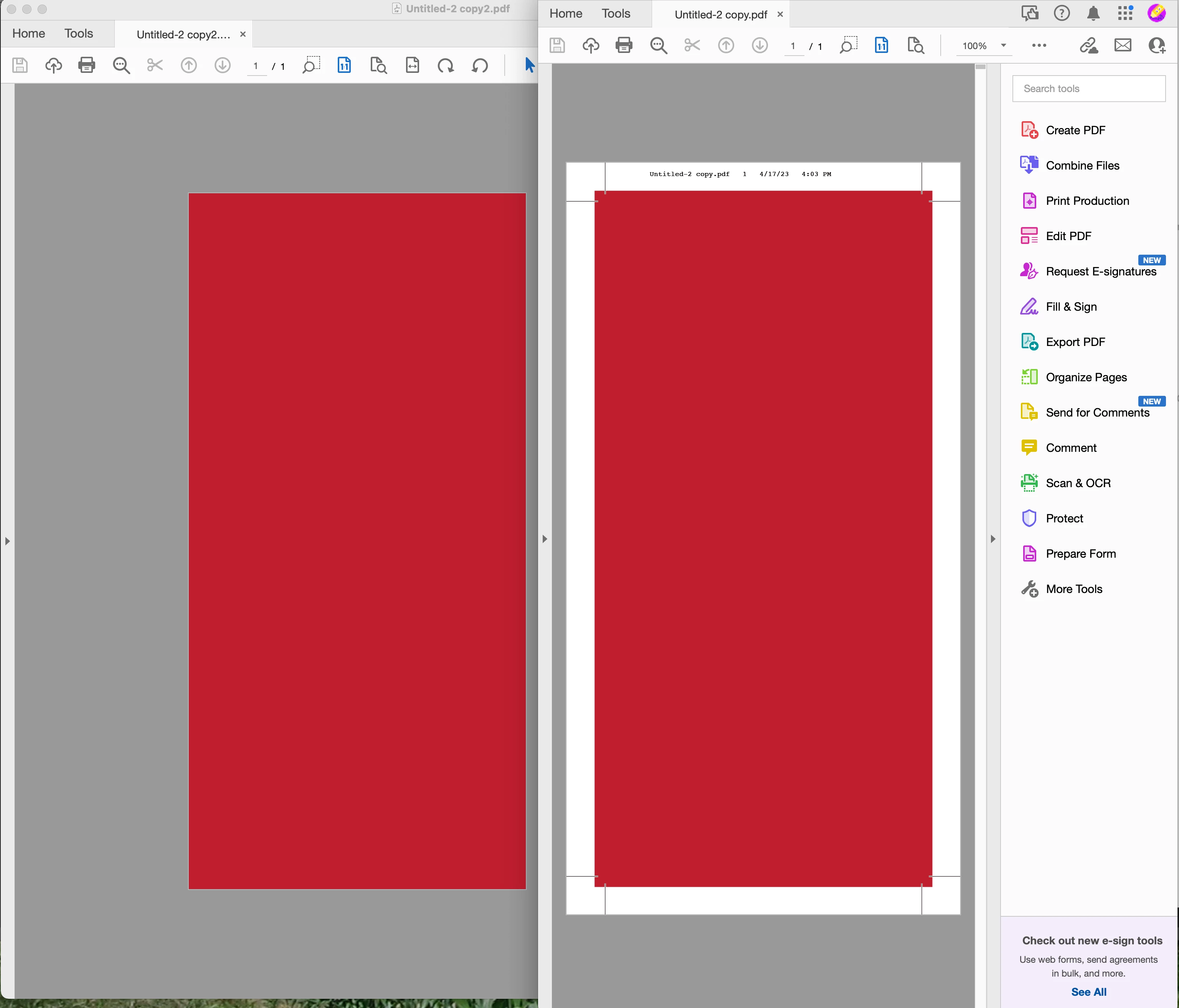 Hello, I am designing banners that had specifications of 36x90 for the main body, a 31x84 "safe zone" and 3.5 inches of bleed. I input the bleed into the document setup at 3.5 inches per side, but I disable the "include bleed" option when exporting as a pdf.