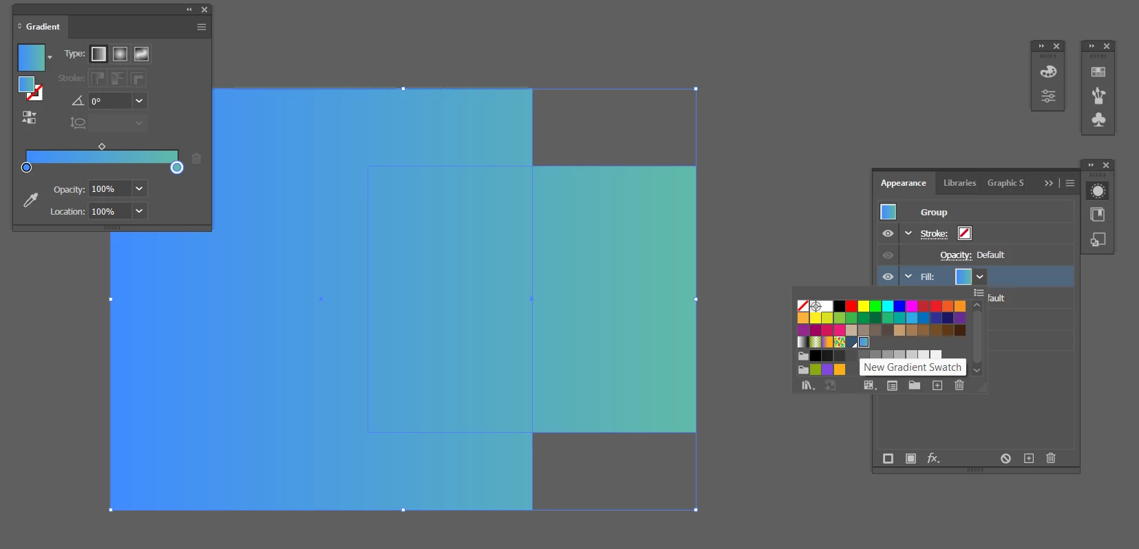1. Create the needed gradient (you can do it any moment by I prefer to prepare it before the Appearance changing). Add it to Swatches.