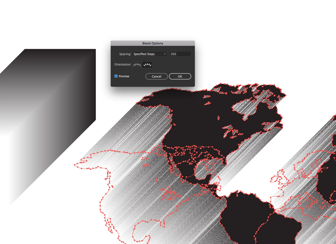 I'm trying to blend this world map into transparent. It works just fine with a rectangle. I also tried increasing or decreaing the steps and different blend options, nothing works..