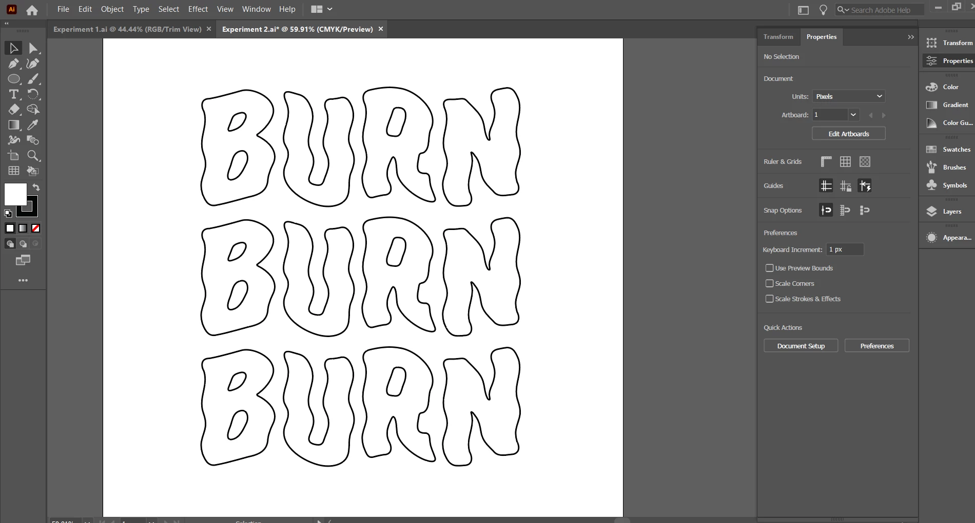 I am attempting to blend these three text objects and add a series of specified steps between them using the blend tool. Ideally, each copy created by the blend would be identical, but I am ending up with a strange warping effect in the copies between the first and second text object. This effect does not occur if I only blend two of the objects.Any guidance is much appreciated. Thank you.