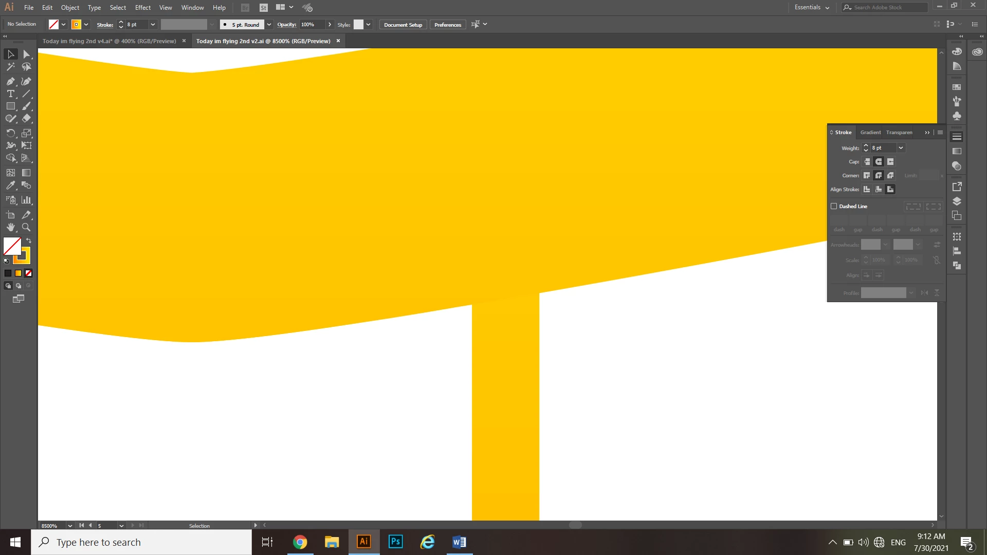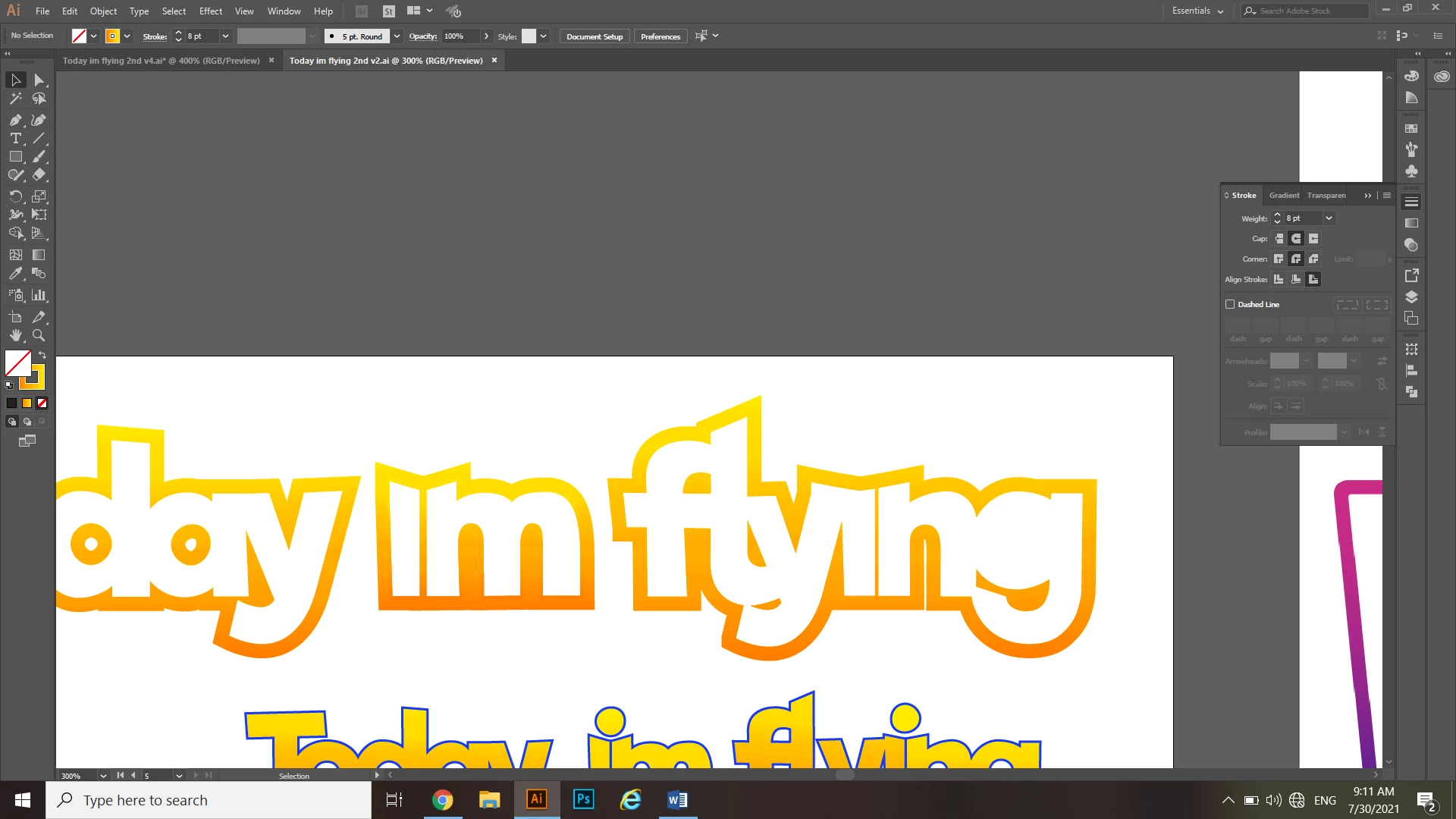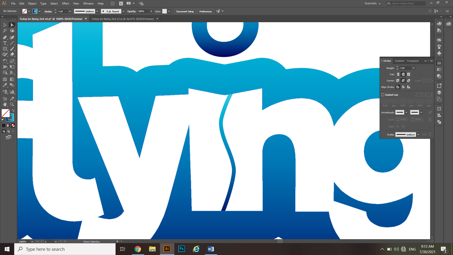 I’m making a text logo for the phrase ‘Today im flying’, I joined the letters in each word with the shape builder tool except for the ‘im’ and the ‘in’ (attaching a picture), I want to make an option without a fill and with a large stroke with a gradient.