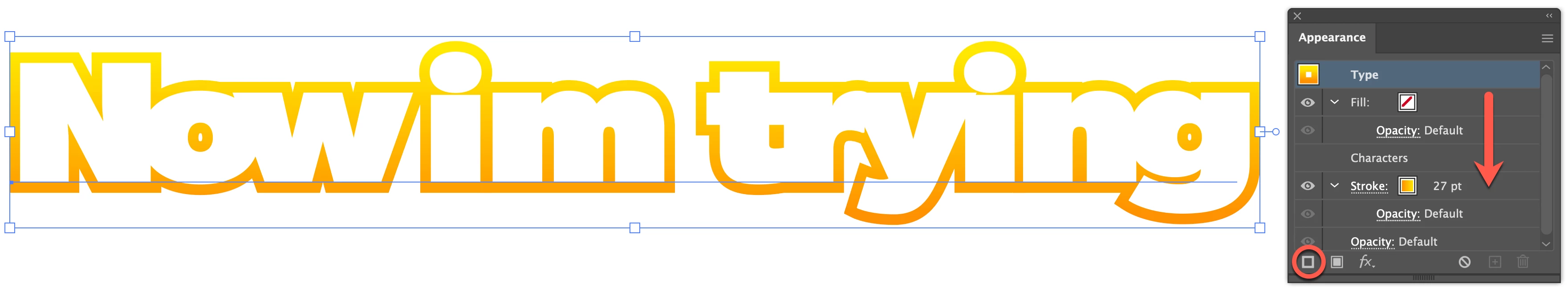 3) Drag the new stroke below the Characters bar and increase its weight to whatever you want.
