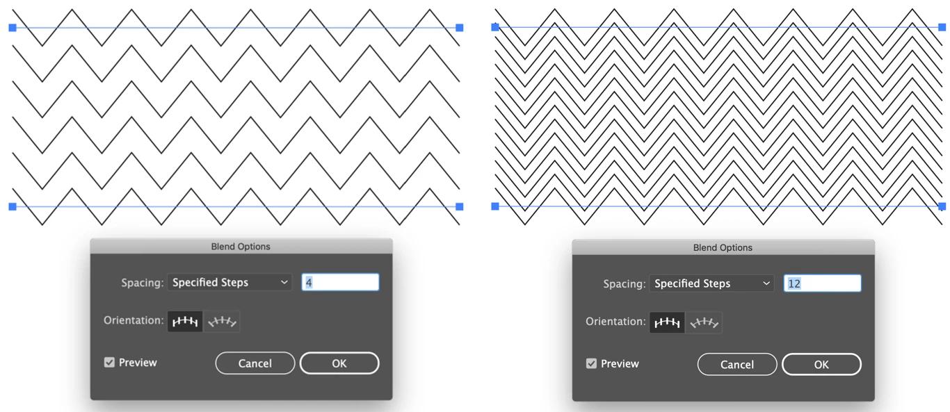 I'm trying to blend two zigzag lines together on Illustrator and every time I go to blend options and blend it, it doesn't work. It also isn't allowing me to click "make" under blend. Help, please!