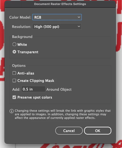 I'm trying create a high res cup image but the symbol wrap is looking very low res. The symbol image is vector and is not increased in size when wrapped onto teh object. Document Raster Effects are set to hi-res, ray tracing is on and set to hi-res. I also tried a bitmap symbol version with the same result.