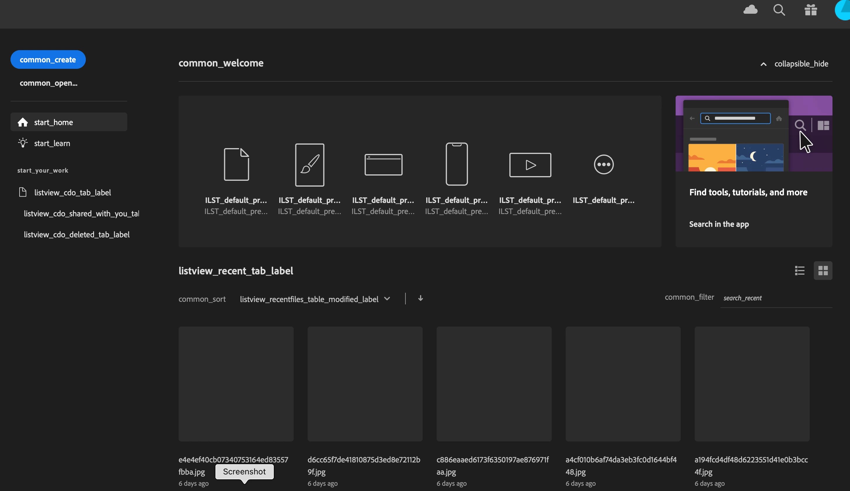 Booting up Illustrator, create new file/open file looks like this