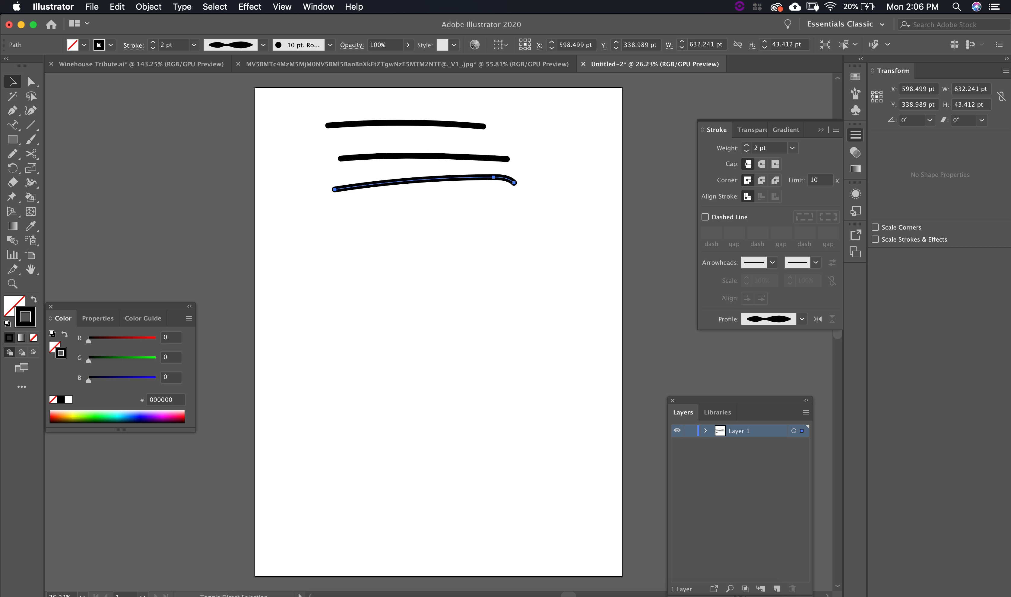 I just want to paint some brush strokes with varying width to give my drawing variety. I don't understand why the lines are all staying in uniform. Please help!