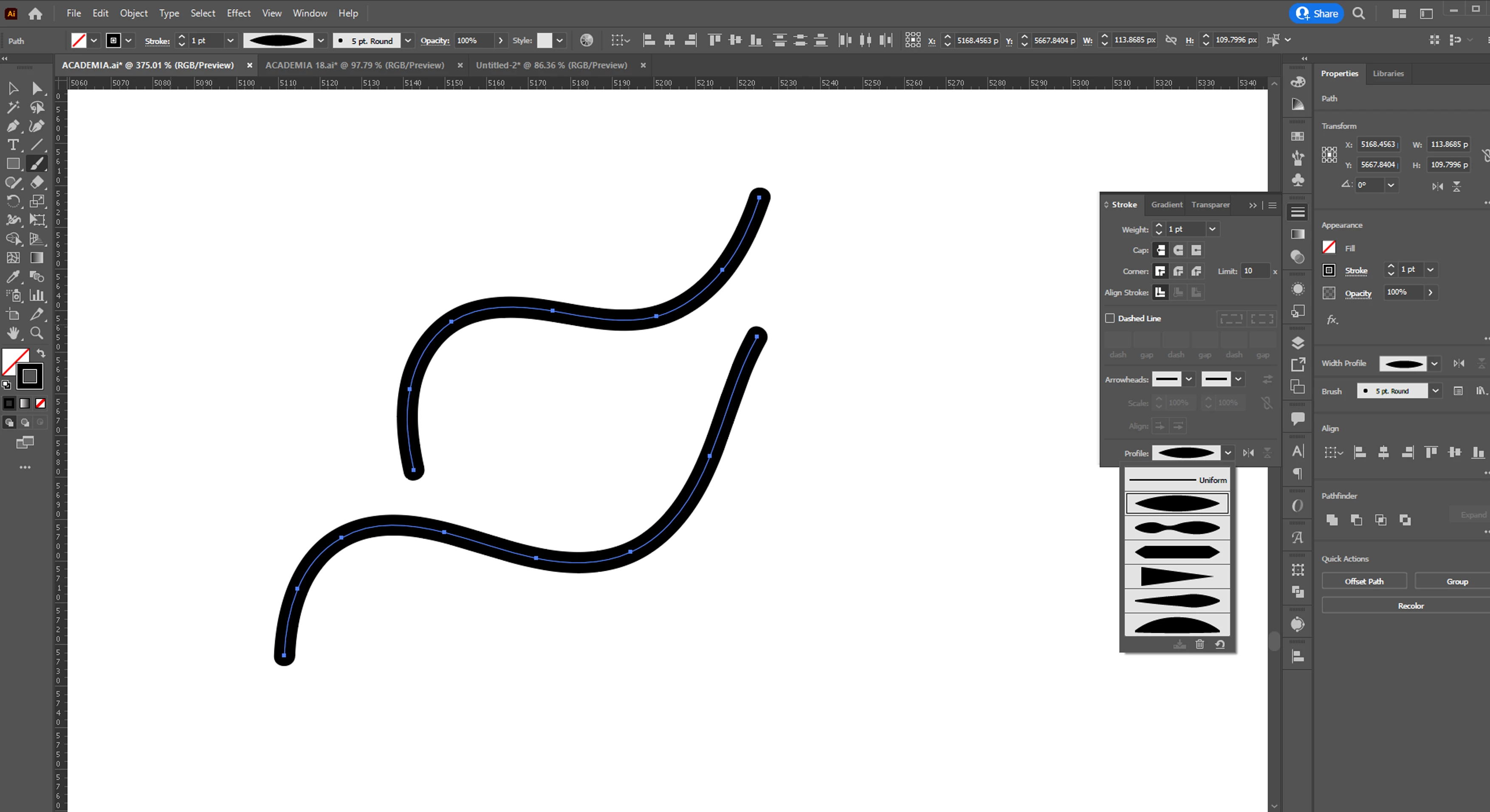 There is a calligraphy brush applied to your stroke. Get rid of that by deleting it in the brushes panel. Then you can apply a width profile.