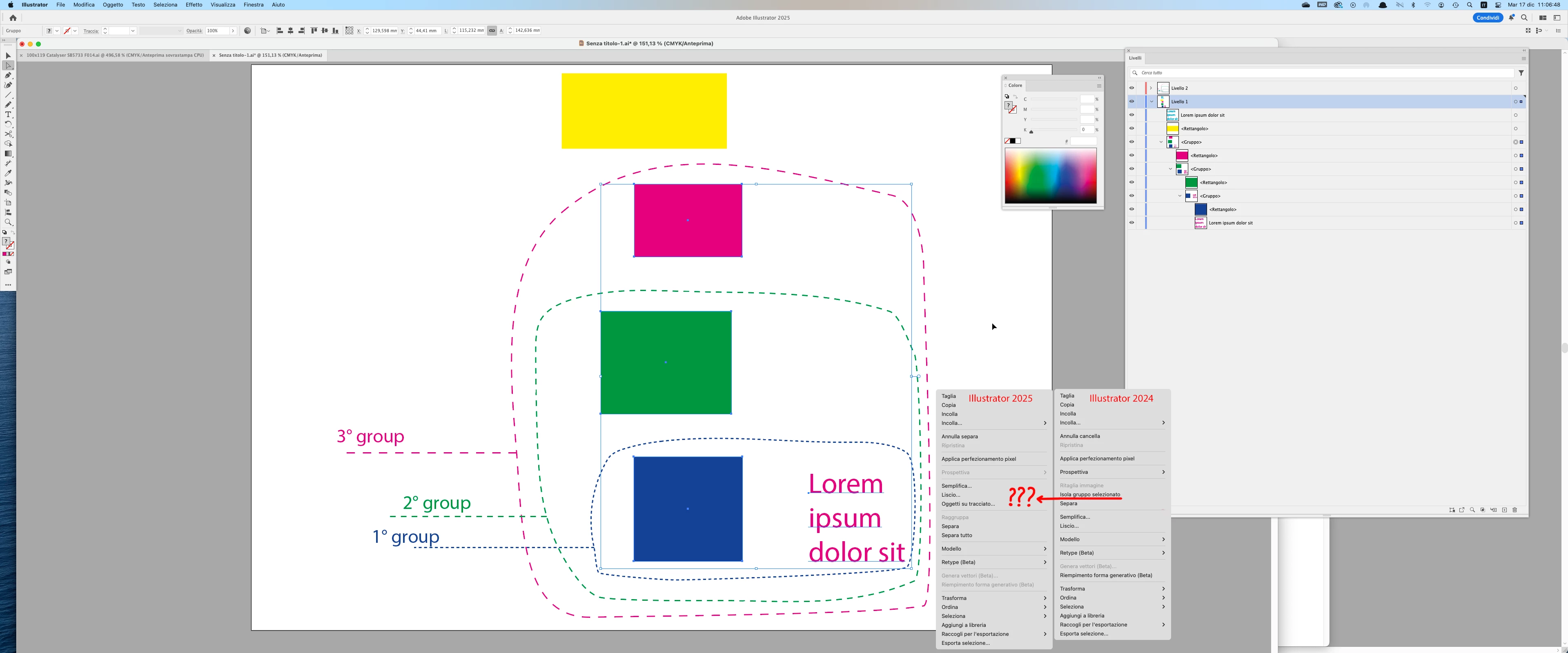 Nella versione 2025 di Illustrator, la funzione "Isola gruppo" non funziona più come nelle versioni precedenti: