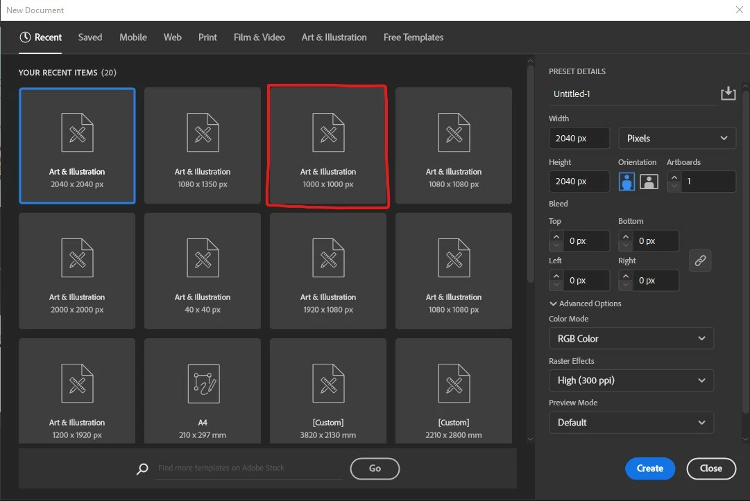 Whenever I create a new document and selecting recent artboard size, it automatically goes back to the first/latest size. It happened not once but multiple times.