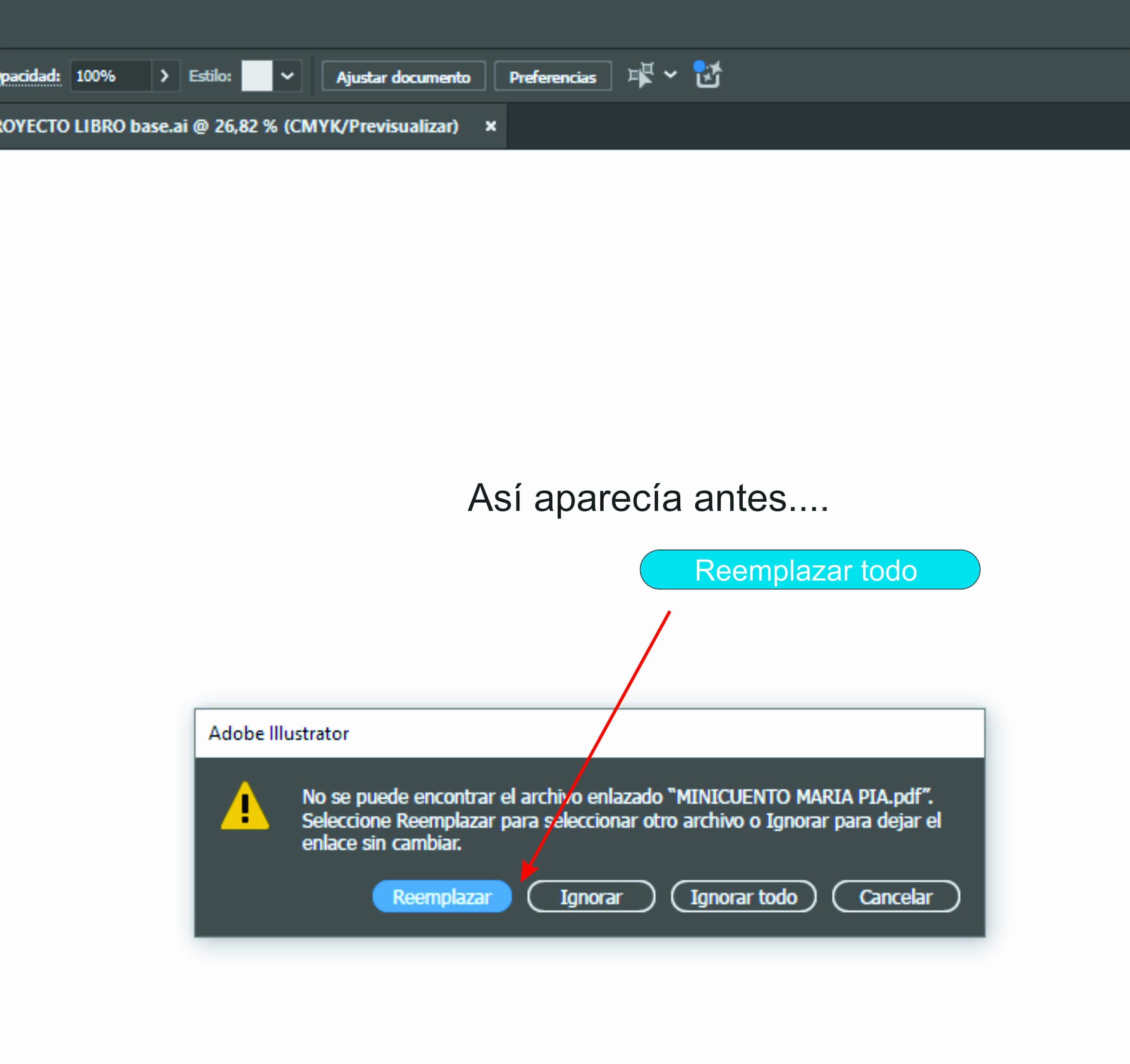 En la ventana flotante de enlace de archivos ... desaperecio el reemplasar todo