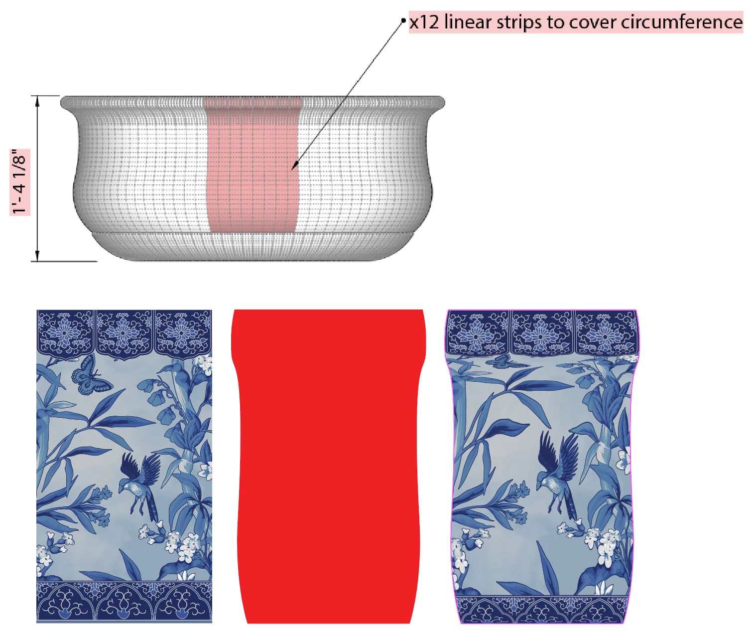 On the attached image, the first object is the graphic, the second is the shape (12 of these make the whole vase), and the third shows how messed up the Envelope Distort is. Using a Mesh is OK, but lacks the perfection I need for this to look seamless across the whole vase.