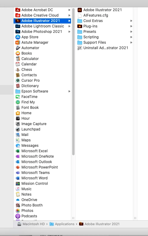 3. Macintosh HD / Applications / Adobe Illustrator 21