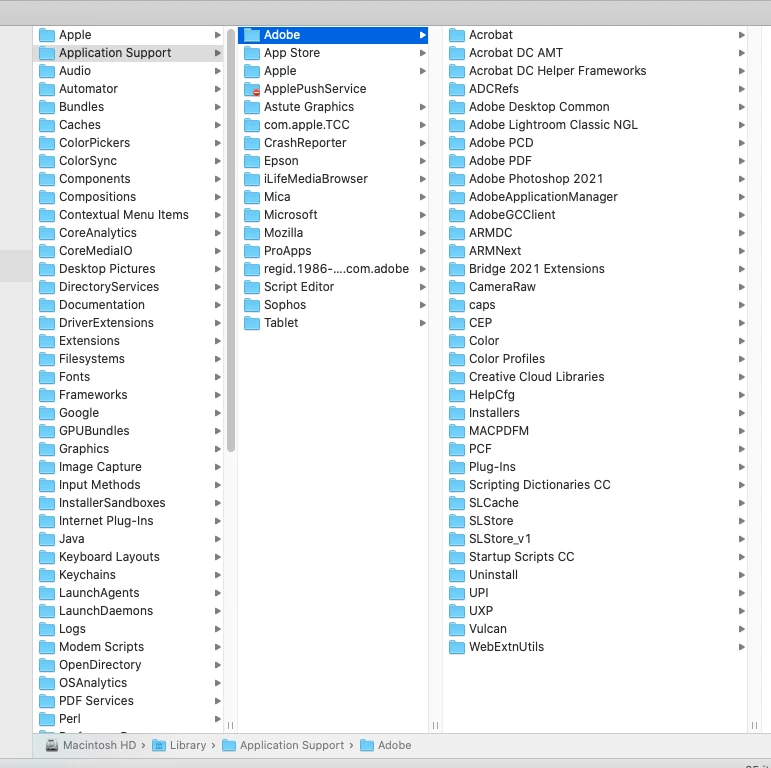 2. Macintosh HD/Library/Application Support/Adobe