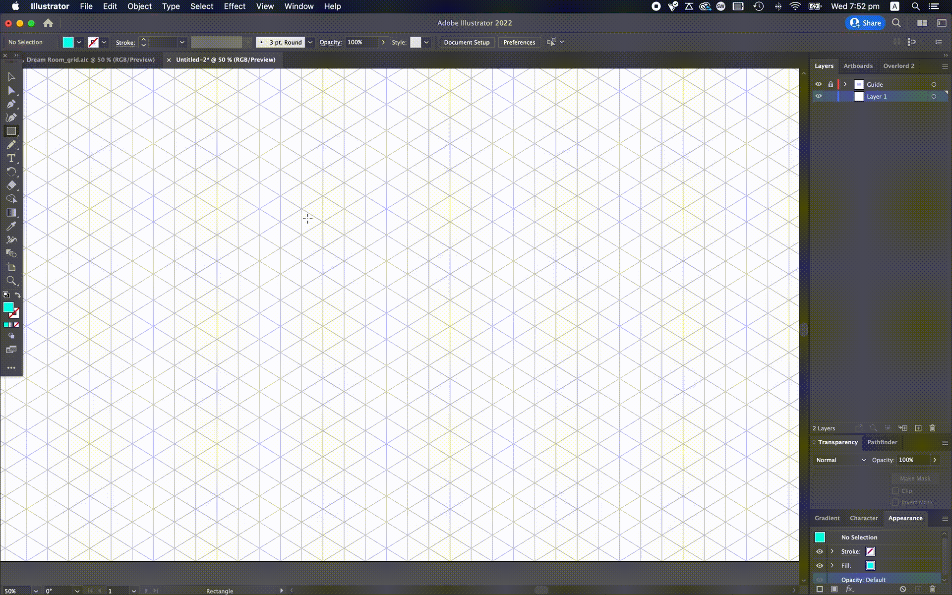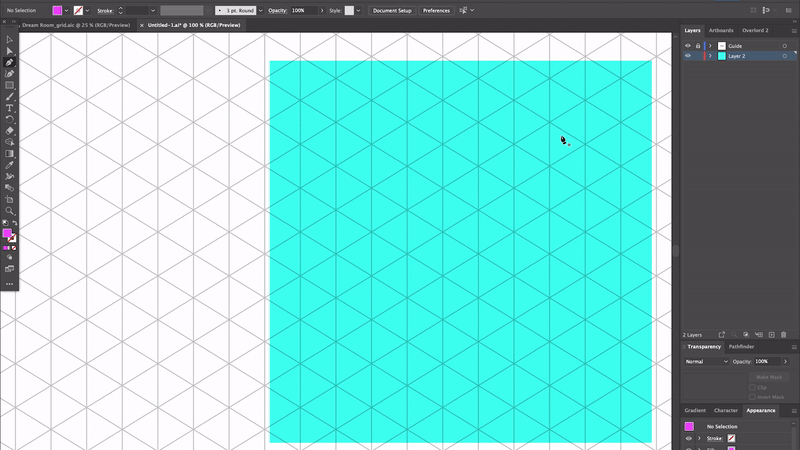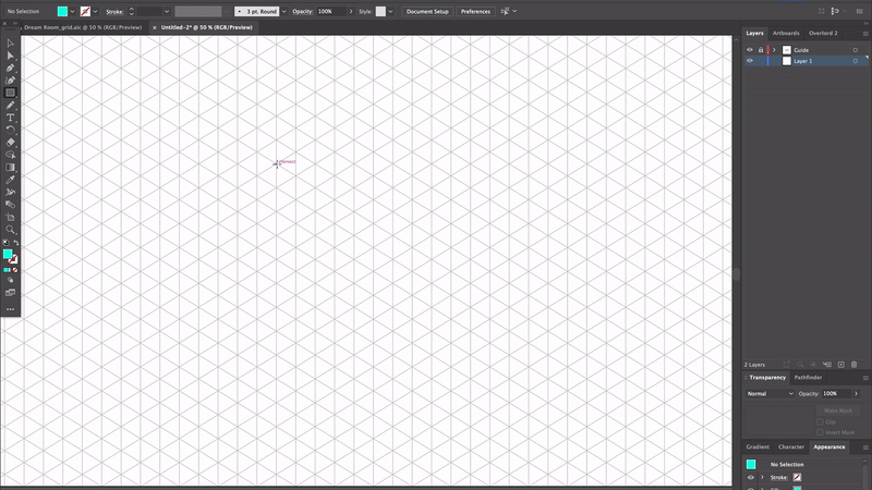 Top layer is isomatric guides made of stroke and 2nd one is drawing place.
