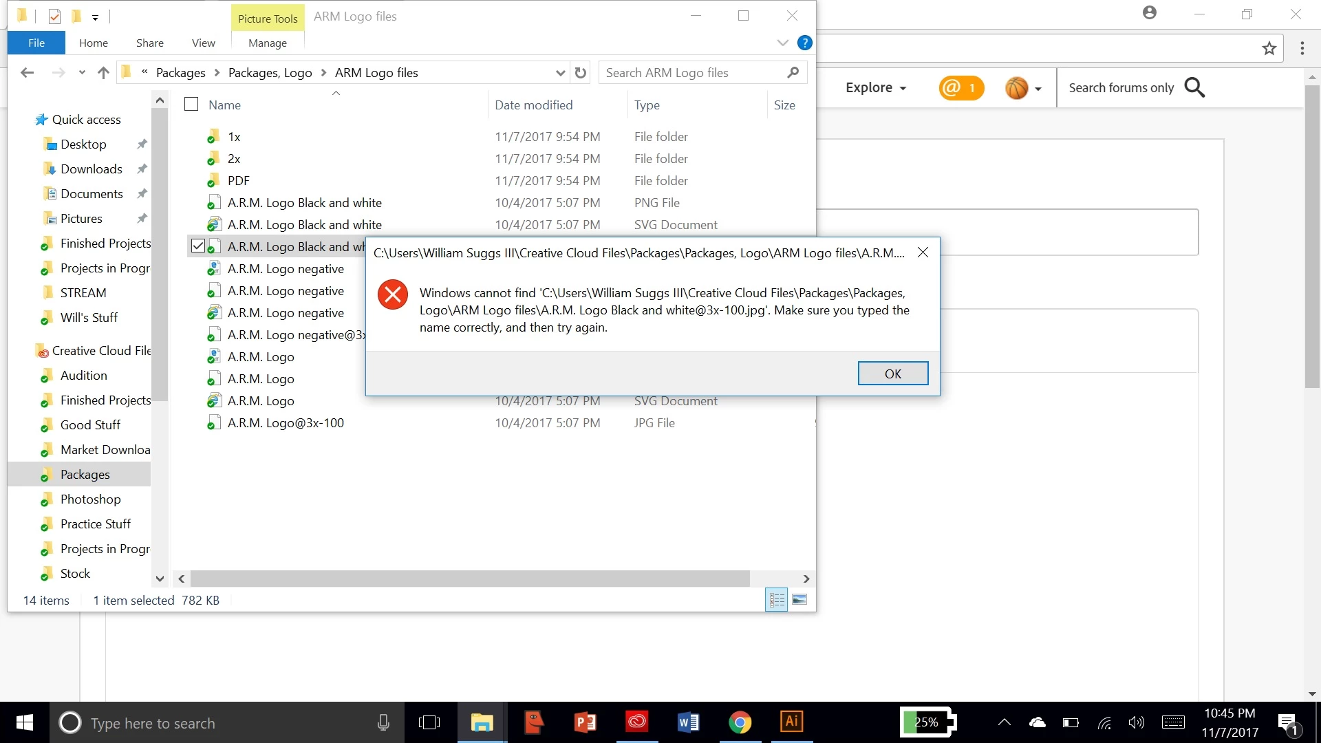 So, recently I've come across an issue with exported files. When I open Illustrator or Photoshop and try to open jpeg, png, svg, or pdf files they open with no problem. However, when I try to open those same files from my PC I get this: