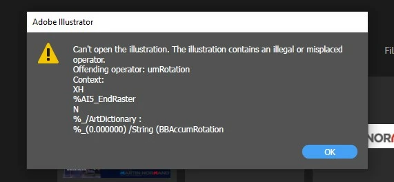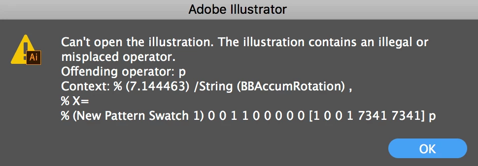 Can't open illustration. Illegal or misplaced operator - cc
