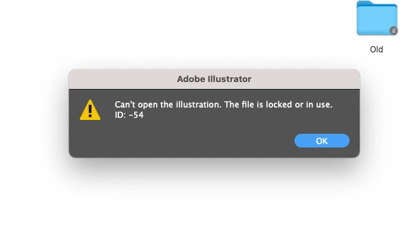 When I click the file to open it, the window says "can't open the illustration. the file is locked or in use ID: - 54"