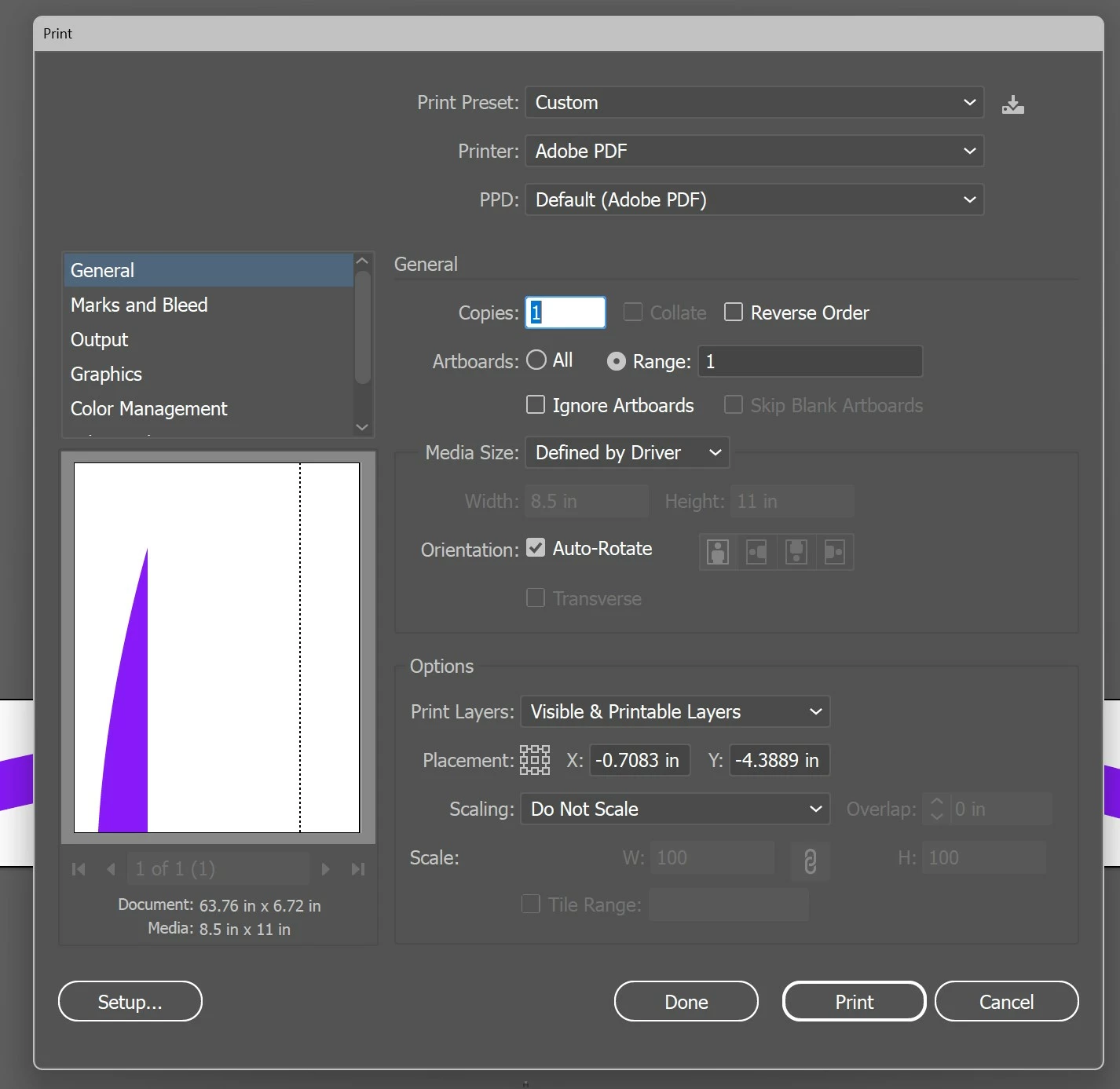 If I try to print it as "Fit to Page" the entire image is visible. I haven't yet figured out a way to pirnt that way and manually scale it up, or I would...