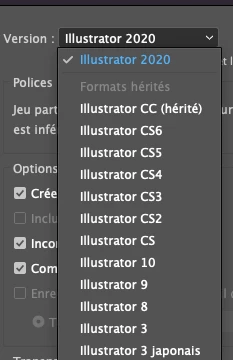 Thanks for reaching out. The version selection is for the minimum version of Illustrator with which your file would work. Selection Illustrator 2020 indicates the file should be compatible with Illustrator 2020 and newer.