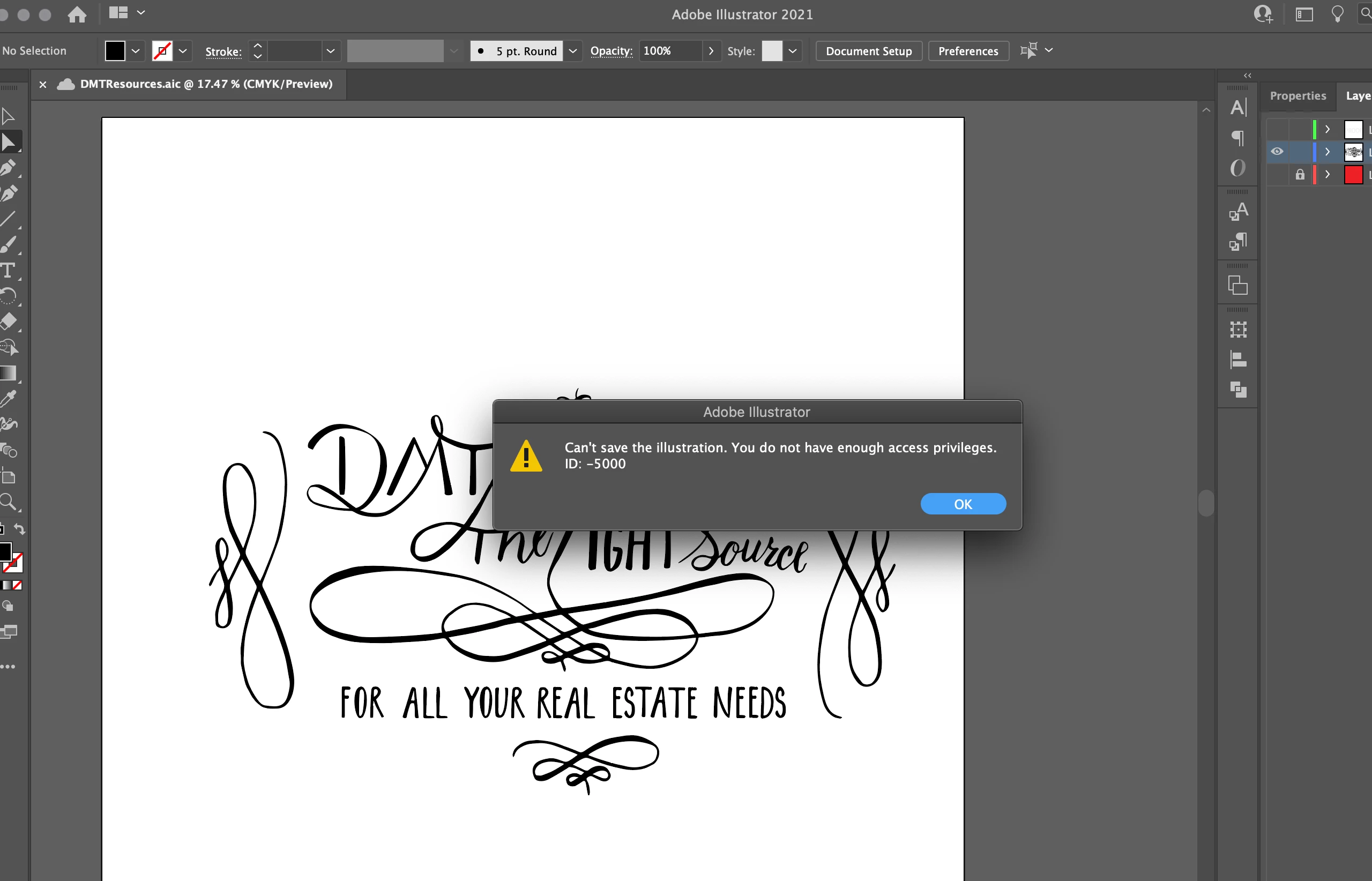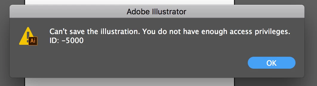 Can`t save the illustration. You do not have enough access privileges. ID: -5000