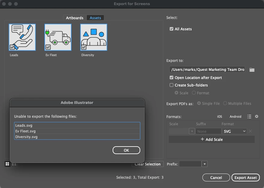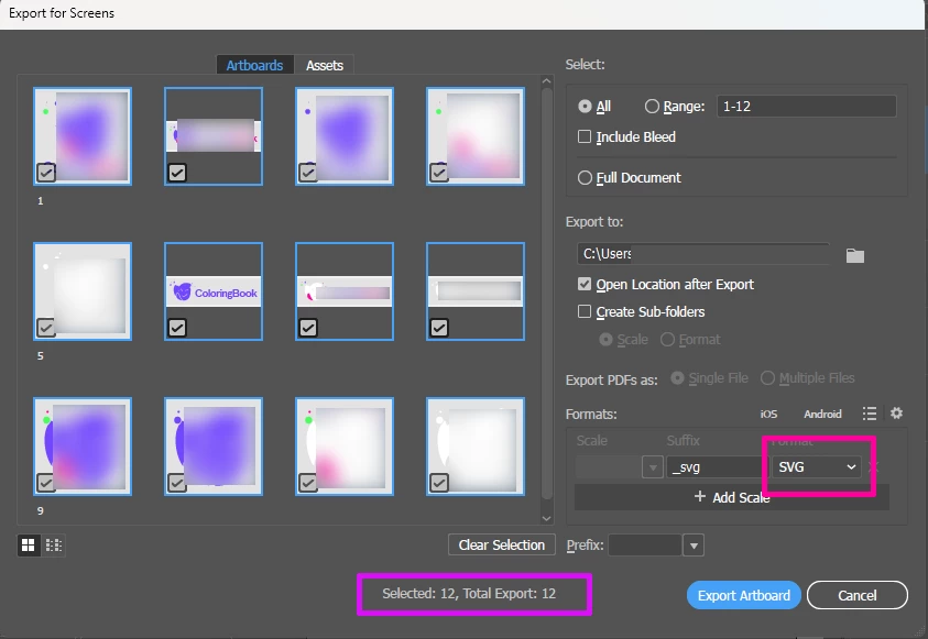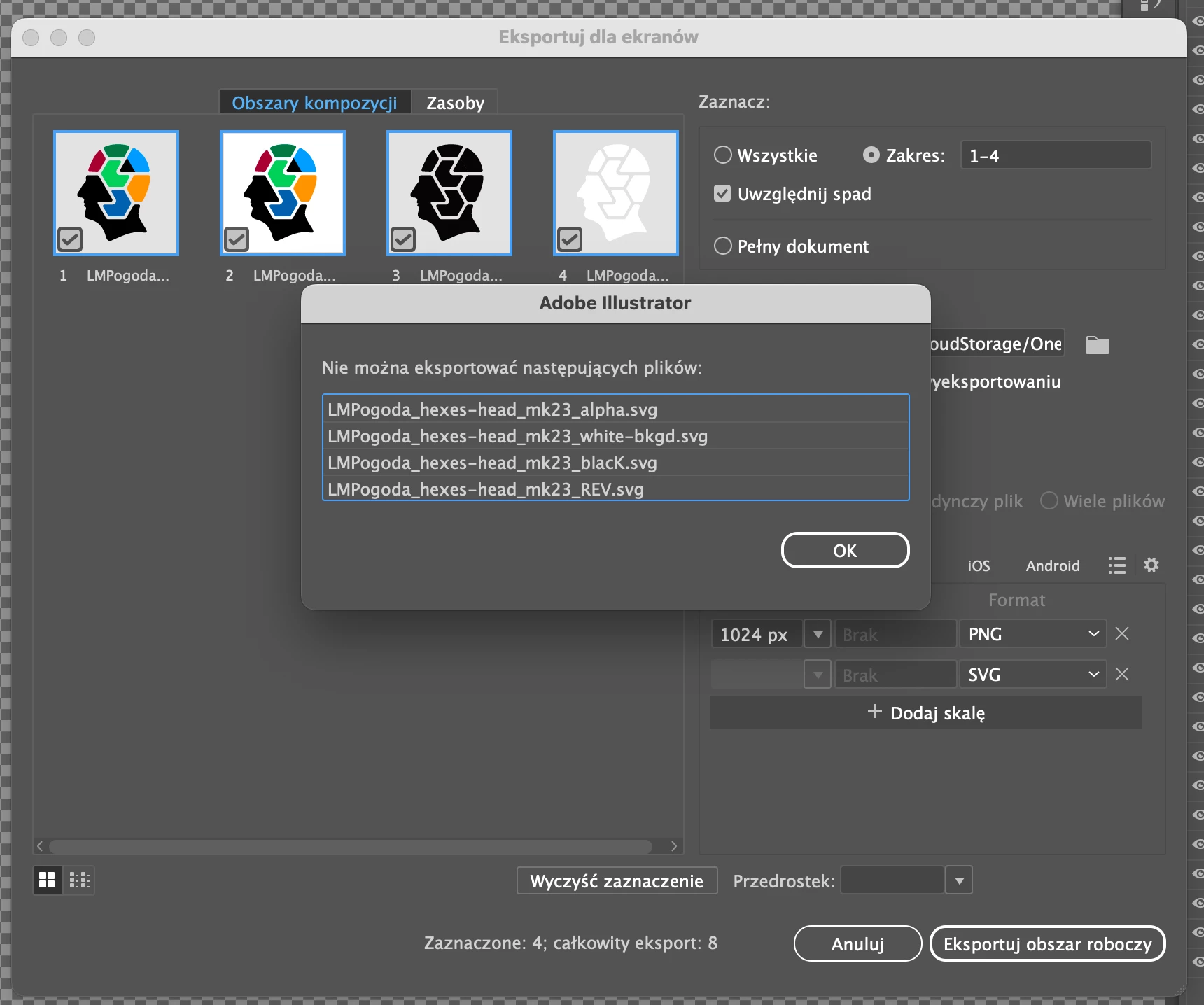 I prepared a few small logos and tried to export it (as usual) using Export for Screens workflow. I went over to artboards, click Export and this is what I get.