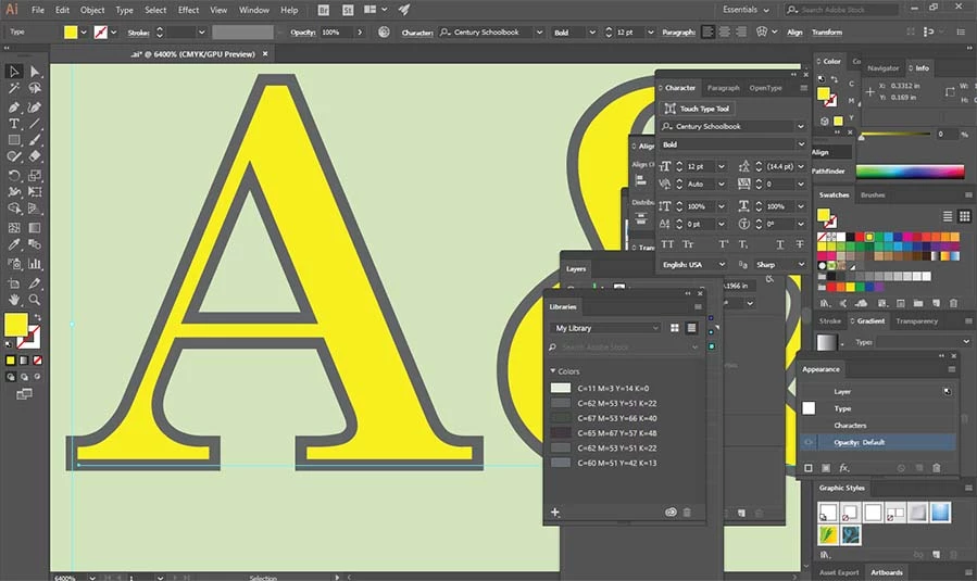 Hi. I'm working on a design for a business card in Illustrator CC 2017. A gray stroke or outline appears around all of my text, and I can't remove it. (Definitely want it gone.) I've been using Century Schoolbook Bold at 12 pts, but the problem occurs with other fonts, too. I imagine the fix is probably really simple and I'm just overlooking it; still... very annoying. I haven't applied a stroke to the text (stroke is set to none); anti-aliasing is turned off in Preferences; and I don't think I've applied a fill twice. Also, if I export to Save for Screens (Legacy) or Export for Screens, the saved image still shows a gray outline around the text.