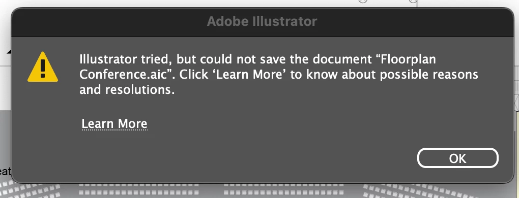 when have some changes and tried to save it pop up with " illustrator tried, but could not save the document "file name"aic". Click 'Learn more' to know about possible reasons and resolutions.