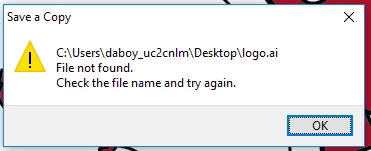 my problem is that whenever i try to save my logo that i made with adobe illustrator cs6, a message pops up on my screen that looks like this: