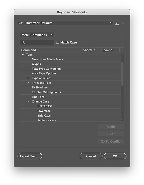 Can anyone let me know what the keyboard shortcut is to convert selected type to 'all caps'. I know where the dialog box is, but the keyboard shortcut (such as in Indesign) is eluding me!