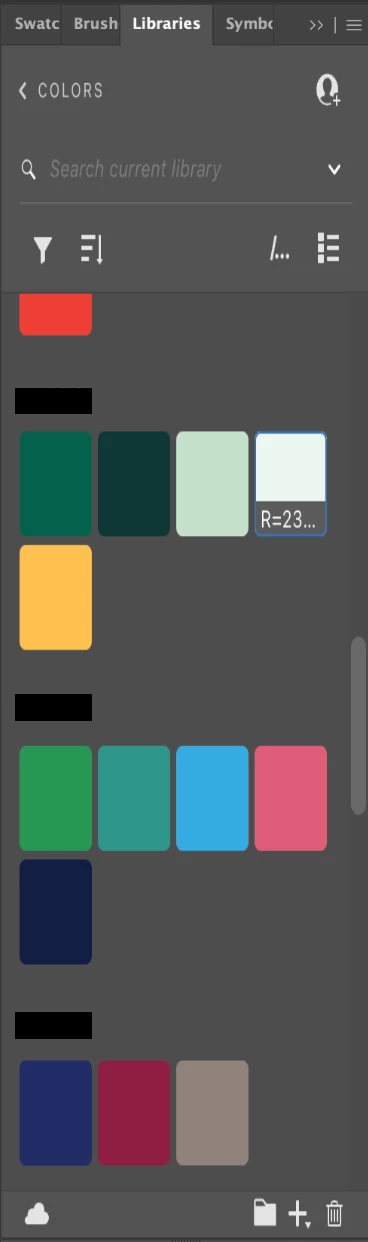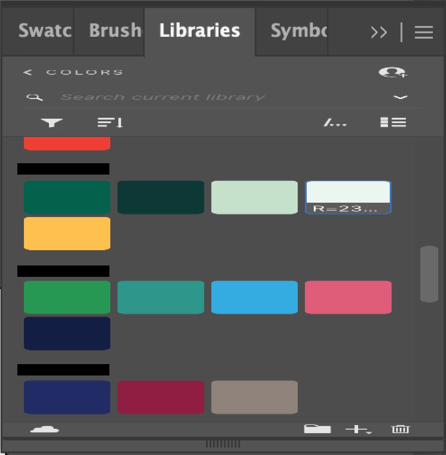 I've been encountering this issue where my libraries panel is entirely unresponsive. I have the most updated version of Illustrator, but this has happened through several updates. For some reason, my library is not responsive to scrolling. It will stretch out as if it was an image if I were to try to pull the panel down to make it larger (see image below). This is frustrating since I keep all of my client color palettes here, and kinda defeats the purpose of creating a library for them since I can't access it. Anyone else encounter the same issue?