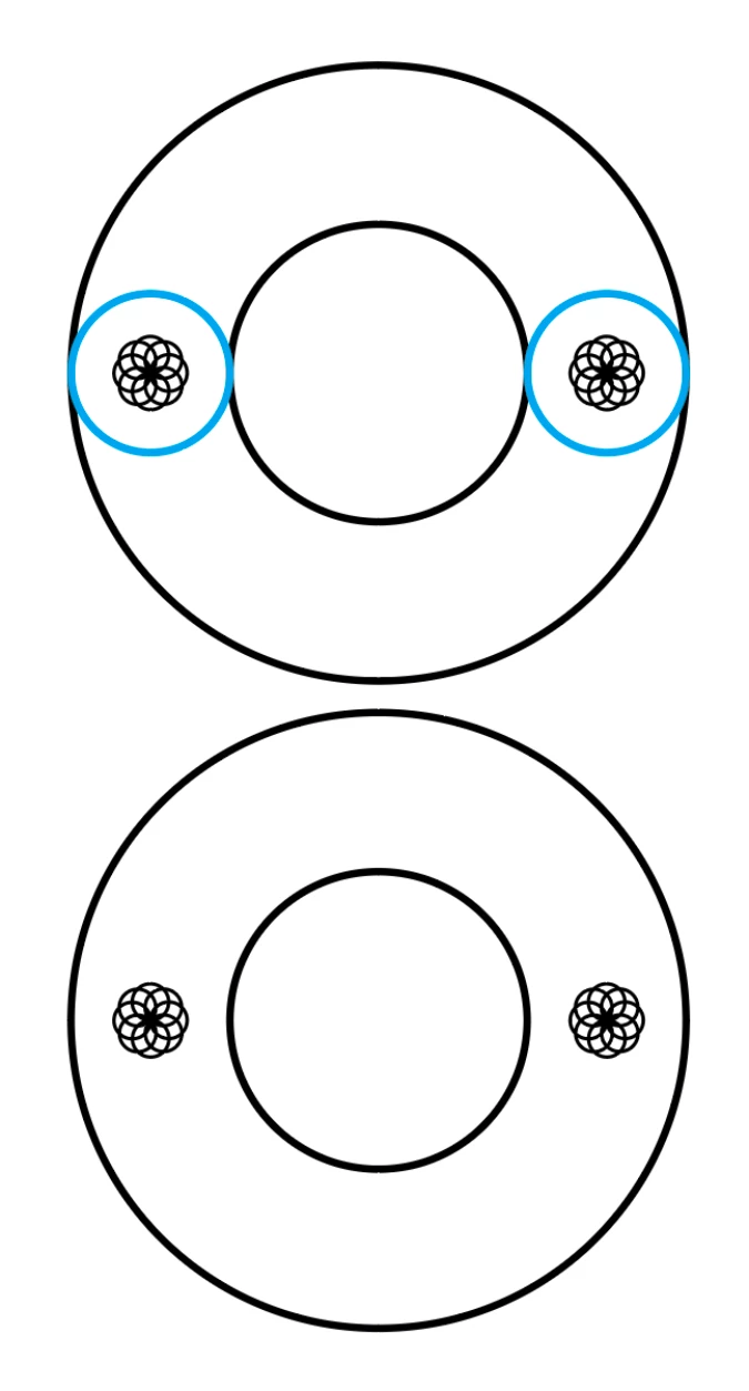 i want to ensure that the small geo icons (in red) are perfectly centred within the border ring(the bit that also happens to have the text in it).