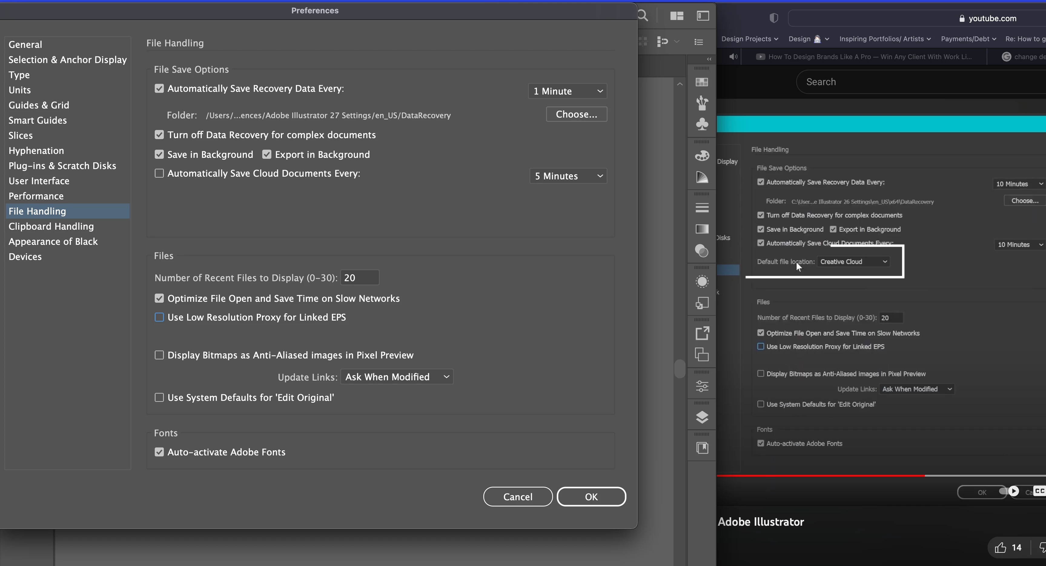 Hey there- I'm trying to have it be so that my default saving is on my external hard drive (Want to do a copy save both on the cloud and my external hard drive if I can)- tried doing this tutorial- and the option it showed in the video doesn't exist in my illustrator for some weird reason and i'm totally updated so I don't know what's up and on the latest iOS operating system.