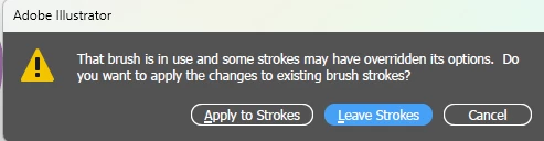 I would like this popup have always Leave Strokes setting and not give me popup. It is really annoyin when trying to draw with graphic tablet and some object is selected during brush size change via shortcut.
