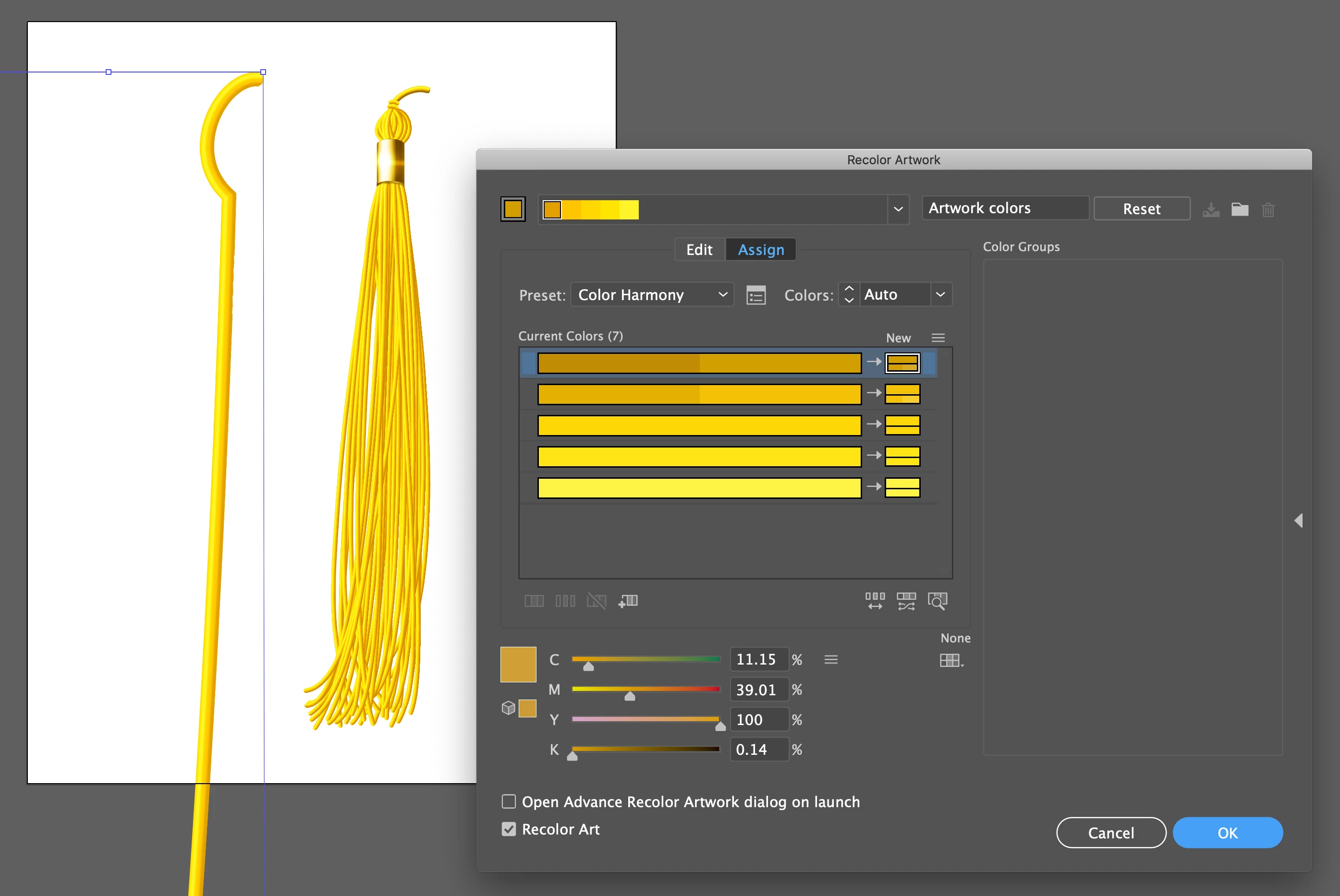 I have a stock illustration where all of the elements are yellow -- contoured. I want to change some of them to blue, keeping the contour. What's the best way to do this?