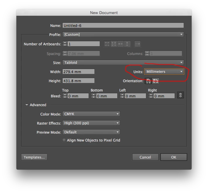 but when I create a new document it is still points. I close the program and re start it and it still has mm in preferences but when I create a new doc it is still points!