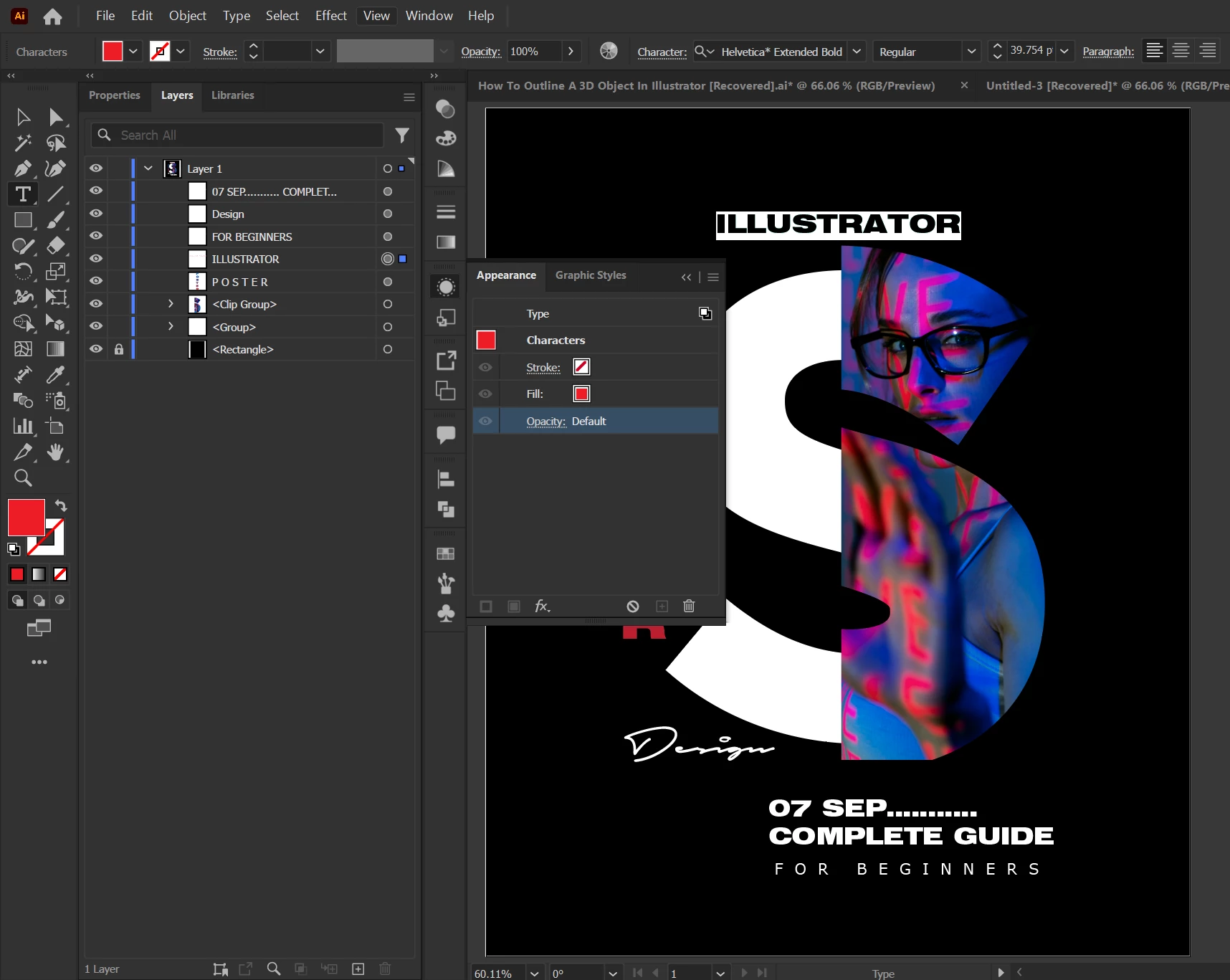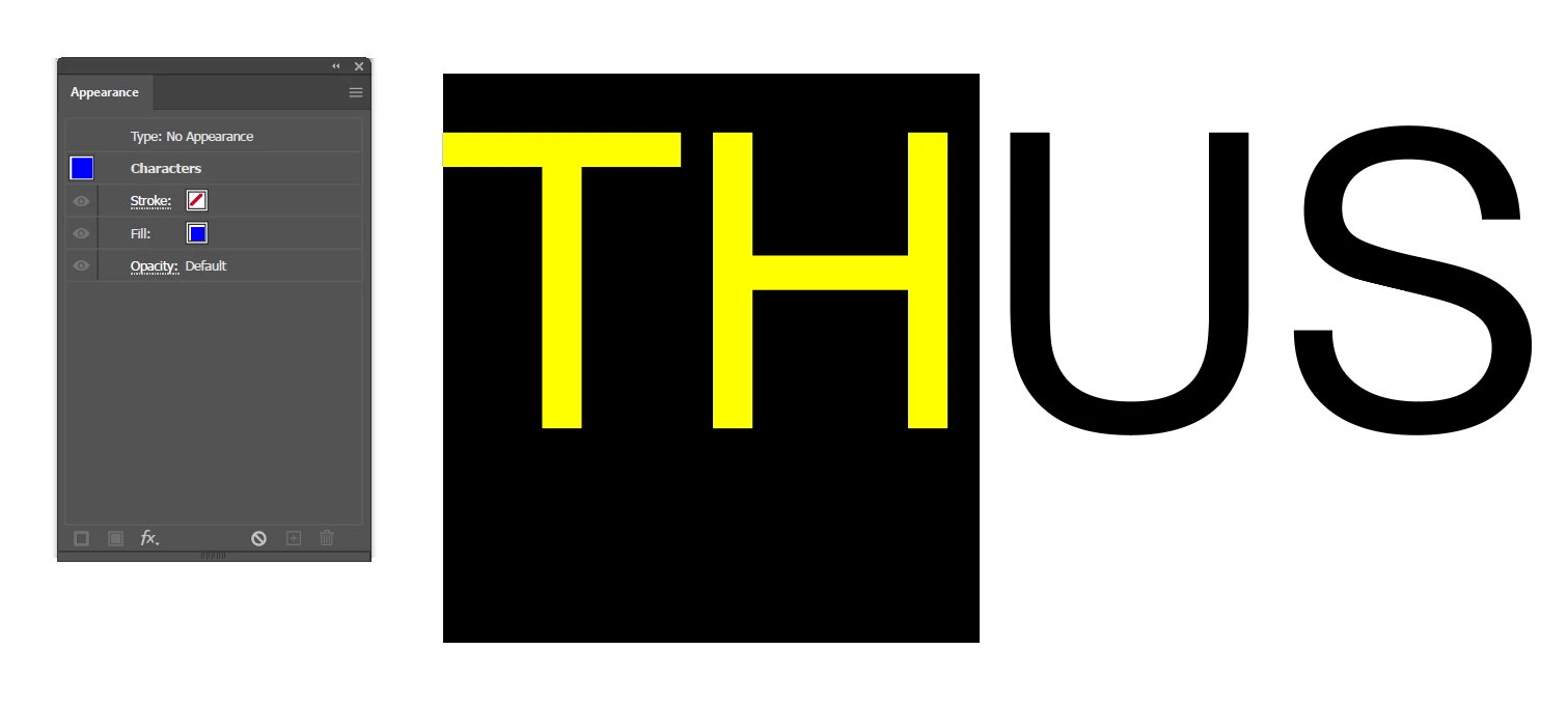 Use the appearance panel to switch between character and (Type) object level. It will make things much clearer.