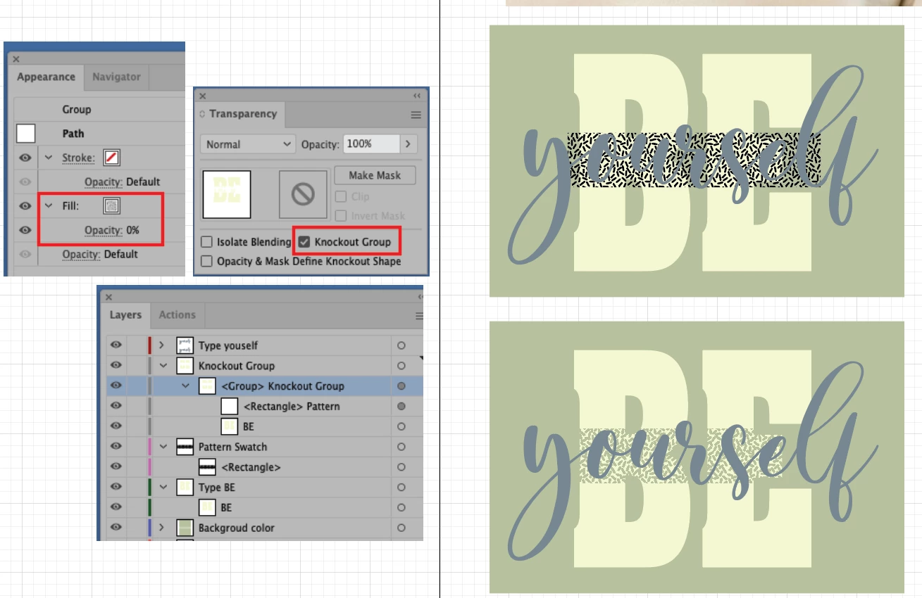 Clipping mask and knockout