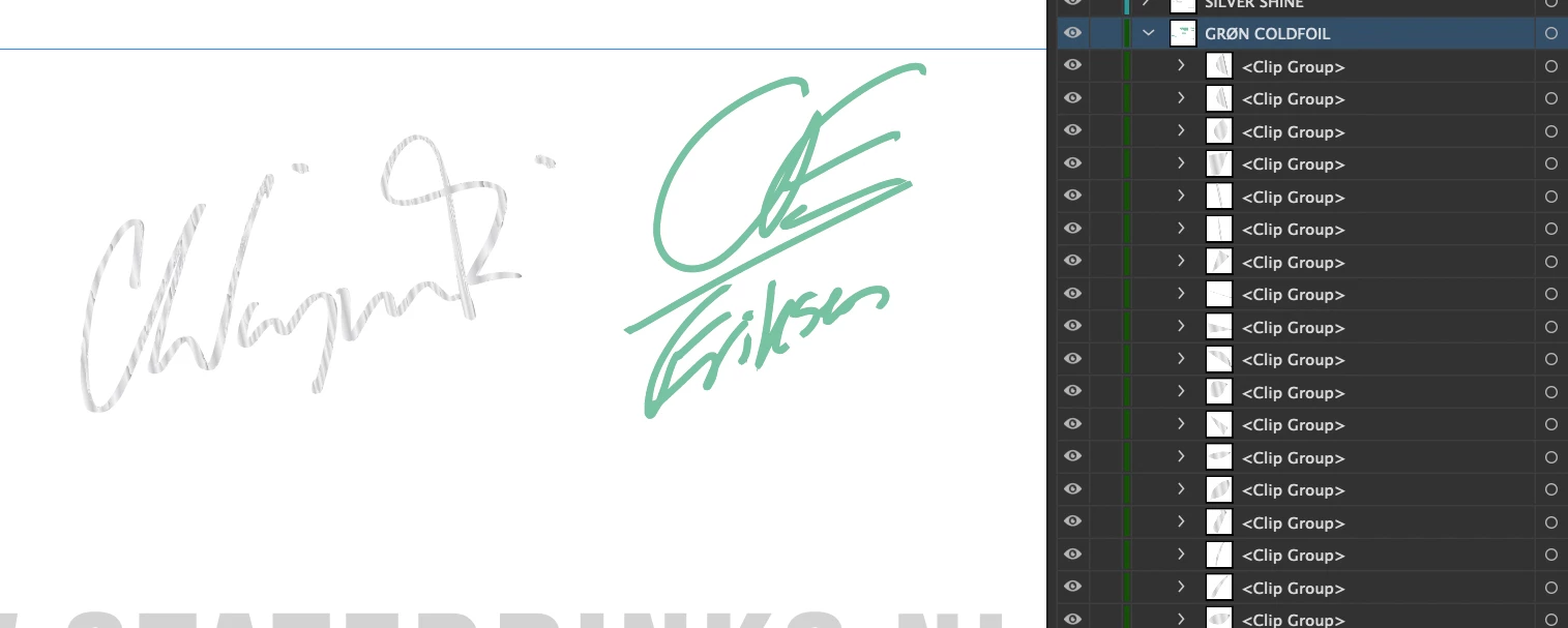 But as you can see in the screenshot (it is the silver autograph that I need to change to green) - the autograph is in 1000 seperate clipping paths - and those clipping paths are also in different clipping groups.