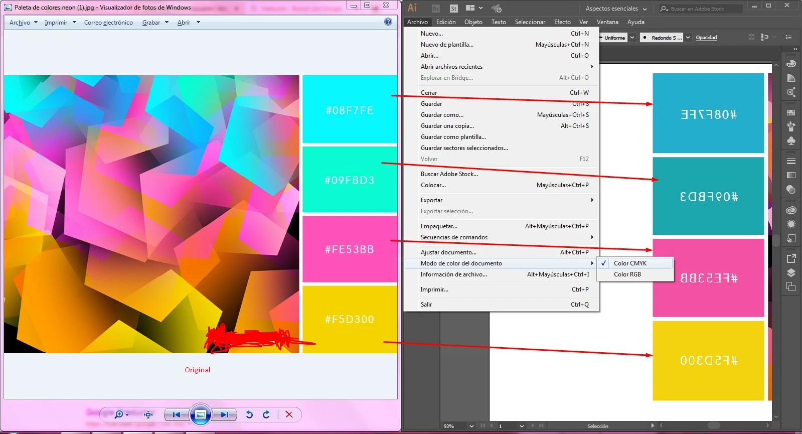 Hello a few days ago in Illustrator 2017 to start a new project with neon colors but when I export the image this was the result